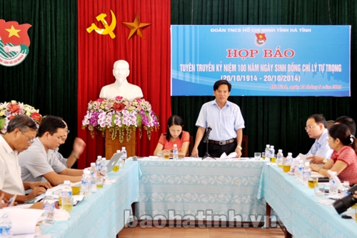 Đặc biệt, hướng tới kỷ niệm 100 năm Ngày sinh đồng chí Lý Tự Trọng, Tỉnh đoàn Hà Tĩnh sẽ tổ chức nhiều hoạt động có quy mô lớn như: khánh thành giai đoạn 1 Khu tưởng niệm Lý Tự Trọng; tổ chức trưng bày, triển lãm ảnh, giới thiệu tư liệu về cuộc đời hoạt động cách mạng của đồng chí Lý Tự Trọng…