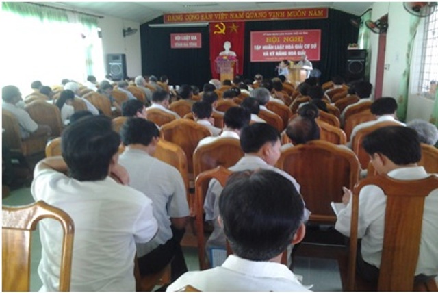 - Các cấp chính quyền phối hợp với Ủy ban Mặt trận Tổ quốc cùng cấp tổ chức phổ biến sâu rộng Luật Hòa giải ở cơ sở cho các tầng lớp nhân dân, theo lộ trình trước hết là cho Ban hòa giải cấp xã, Tổ hòa giải và Hòa giải viên, sau đó cho người dân từng thôn/xóm/tổ dân phố.