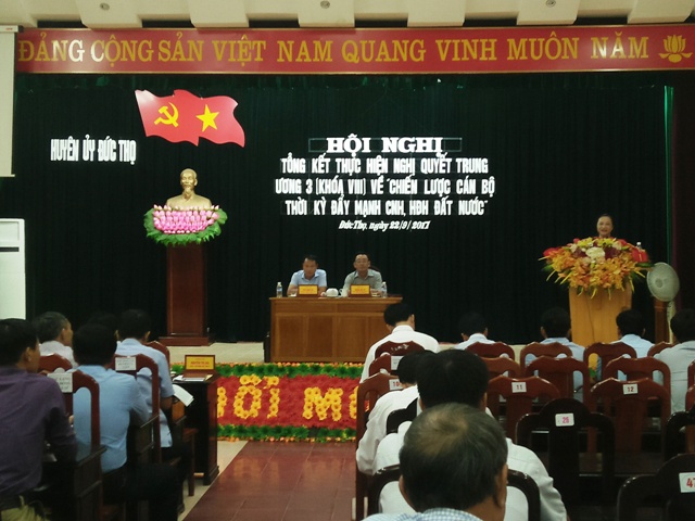 Thời gian tới, Đảng bộ huyện Đức Thọ đặt mục tiêu 100% cán bộ chủ chốt các xã, thị trấn có trình độ chuyên môn đại học và Trung cấp chính trị; mỗi nhiệm kỳ luân chuyển, đổi mới từ 20-30% số cán bộ lãnh đạo Đảng, nhà nước, đoàn thể.