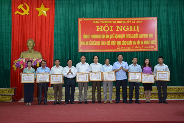 Thường trực Huyện ủy Kỳ Anh trao giấy khen cho các tập thể có nhiều thành tích trong thực hiện Nghị quyết Trung ương 3 khóa VIII |