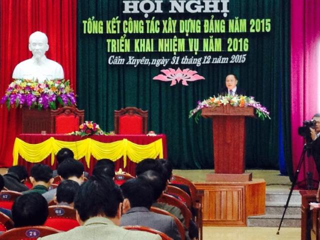 Phát biểu chỉ đạo hội nghị, đồng chí Phan Cao Thanh, Ủy viên Ban Thường vụ, Trưởng Ban Dân vận Tỉnh ủy, Trưởng đoàn chỉ đạo, kiểm tra, giám sát của Ban Thưởng vụ Tỉnh ủy ghi nhận, biểu dương những kết quả Đảng bộ huyện Cẩm Xuyên đã đạt được trong năm qua, đồng thời chỉ ra một số hạn chế, trên cơ sở đó, đề nghị Đảng bộ huyện tiếp tục bám sát Nghị quyết Đại hội Đảng bộ huyện, Đảng bộ tỉnh nhiệm kỳ 2015 - 2020 đã đề ra để thực hiện các nhiệm vụ chính trị trên địa bàn, tập trung cao cho Đề án tái cơ cấu ngành nông nghiệp, quyết liệt trong xây dựng nông thôn mới và tranh thủ các điều kiện để triển khai các dự án về trên địa bàn; chăm lo công tác xây dựng Đảng...