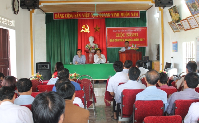 Định hướng công tác tuyên truyền thời gian tới, lãnh đạo Ban Tuyên giáo Huyện ủy đề nghị các đảng bộ, chi bộ cơ sở, đội ngũ báo cáo viên từ huyện tới cơ sở tiếp tục đẩy mạnh tuyên truyền các chủ trương, chính sách của Đảng, Nhà nước, các cấp đến cán bộ, đảng viên và các tầng lớp nhân dân; động viên nhân dân tập trung chăm sóc vụ Hè Thu, tiêm phòng cho đàn gia súc, gia cầm; huy động cả hệ thống chính trị cho nhiệm vụ thu ngân sách. Tuyên truyền về xây dựng nông thôn mới và đô thị văn minh, nhất là xây dựng khu dân cư kiểu mẫu, vườn mẫu gắn với đẩy nhanh tiến độ làm đường giao thông, vệ sinh môi trường nông thôn. Đội ngũ báo cáo viên triển khai thực hiện có hiệu quả Chỉ thị 05-CT/TW về đẩy mạnh học tập và làm theo tư tưởng, đạo đức, phong cách Hồ Chí Minh, tuyên truyền đậm nét các hoạt động kỷ niệm 60 năm ngày Bác Hồ về thăm Hà Tĩnh, đồng thời bám sát định hướng, lồng ghép tuyên truyền sâu rộng trong nhân dân về các ngày lễ, kỉ niệm lớn; nắm các vấn đề dư luận xã hội, diễn biến tư tưởng, chính trị trong cán bộ, đảng viên và nhân dân để có biện pháp đấu tranh hiệu quả đối với các luận điệu xuyên tạc, kích động của thế lực thù địch.