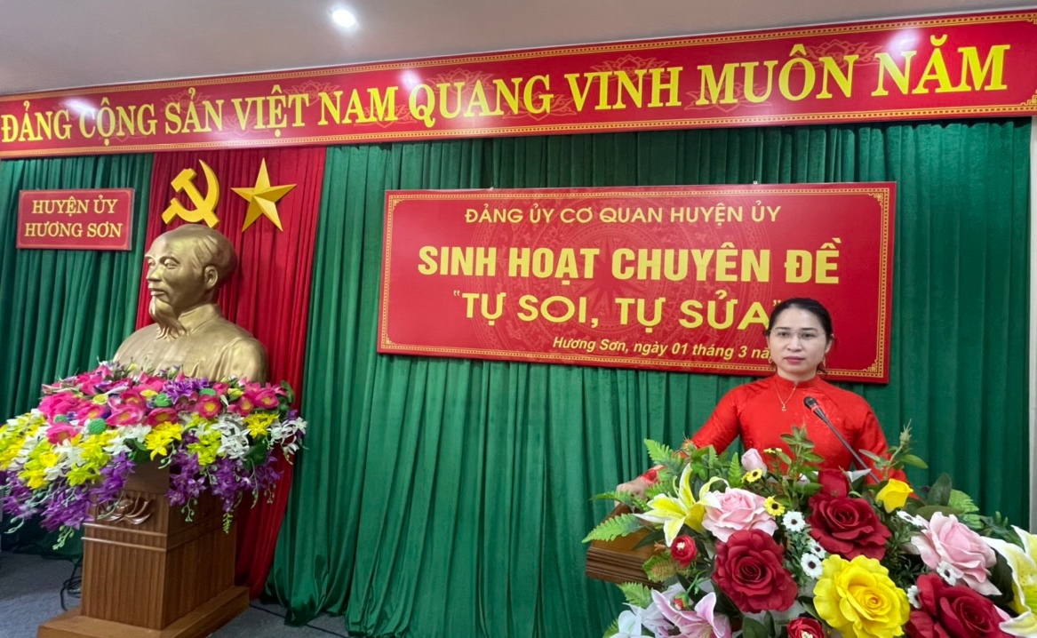 Để các đợt sinh hoạt chuyên đề đạt kết quả cao, đồng chí Phó Bí thư Thường trực Huyện ủy, Bí thư Đảng ủy Cơ quan Huyện ủy yêu cầu các chi ủy, bí thư chi bộ cần tiếp tục quán triệt sâu sắc mục đích yêu cầu, nội dung “tự soi, tự sửa” theo Kế hoạch của Đảng ủy Cơ quan gắn với việc góp ý vào bản cam kết, tu dưỡng, rèn luyện của đảng viên để nhận xét, đánh giá thông qua các kỳ sinh hoạt chi bộ. Chi bộ xây dựng kế hoạch và tạo điều kiện cho đảng viên thực hiện nhiệm vụ học tập, không ngừng nâng cao trình độ về mọi mặt, xây dựng đội ngũ cán bộ theo tinh thần Nghị quyết số 02-NQ/HU của Ban Chấp hành Đảng bộ huyện là “giỏi một việc, biết nhiều việc”; xây dựng kế hoạch, biện pháp quản lý, phân công nhiệm vụ và tạo điều kiện để đảng viên hoàn thành nhiệm vụ được giao; tiếp tục đổi mới, nâng cao chất sinh hoạt chi bộ. Phát huy vai trò người đứng đầu trong điều hành với nhiều giải pháp cụ thể, thiết thực, như tăng cường đối thoại, phản biện trong sinh hoạt đảng, sinh hoạt chuyên môn; thực hiện tốt quy chế dân chủ, khơi dậy tinh thần hăng hái phát biểu ý kiến của đảng viên tham gia vào những hạn chế, khuyết điểm mà quá trình “tự soi”; bí thư chi bộ phát huy tinh thần gương mẫu trong tự phê bình và phê bình trước chi bộ, tạo khí thế cho đảng viên sôi nổi tham gia tự phê bình và phê bình... Mỗi cán bộ, đảng viên phải ra sức học tập, rèn luyện nâng cao trình độ chuyên môn, năng lực sáng tạo trong công tác, gương mẫu trong mọi hoạt động... Các đảng viên được phân công phụ trách các địa phương, đơn vị tiếp tục sâu sát cơ sở, chỉ đạo, hướng dẫn đợt sinh hoạt cao điểm trong tháng 3 và tháng 4 đảm bảo mục đích, yêu cầu đề ra, tạo nên hiệu quả “kép” vừa nêu cao tinh thần tiền phong, gương mẫu, vừa giúp đảng viên thấy được hạn chế của bản thân, của các đảng viên khác trong chi bộ, đảng bộ, từ đó quyết tâm “tự sửa”, tích cực tu dưỡng, rèn luyện, phấn đấu hoàn thành tốt hơn nhiệm vụ được giao; góp phần tạo chuyển biến tích cực trong công tác xây dựng Đảng ở Đảng bộ Cơ quan Huyện ủy nói riêng, Đảng bộ huyện Hương Sơn nói chung.