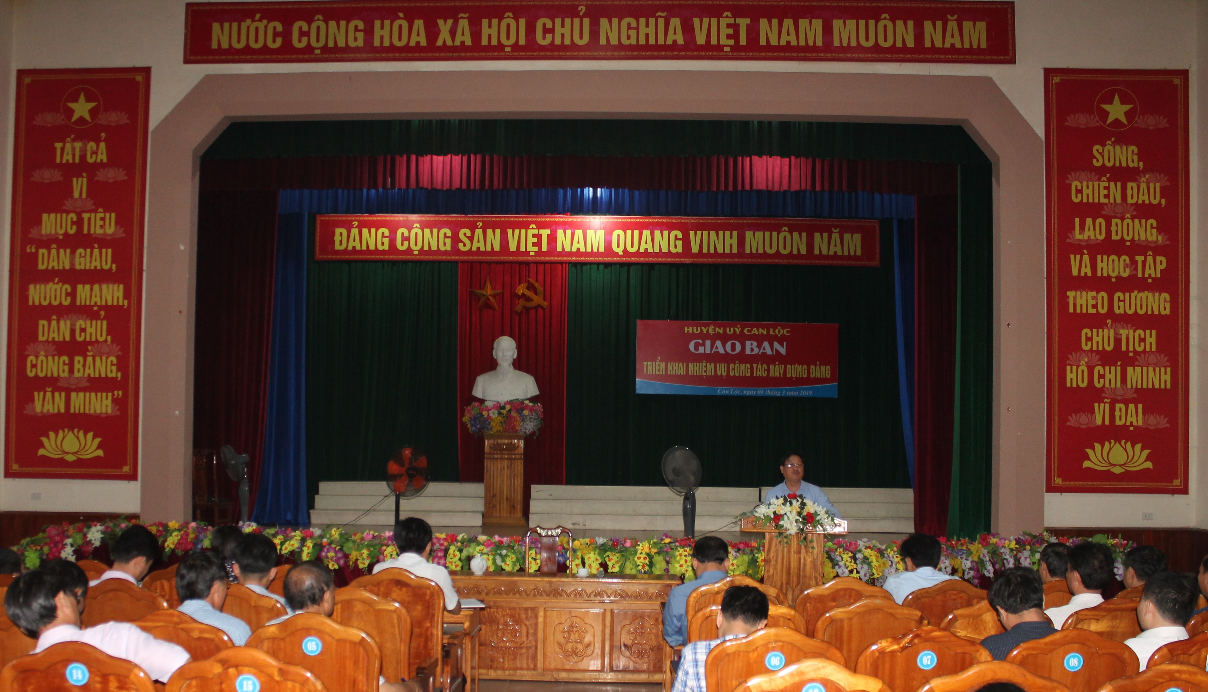 Chiều ngày 06/3/2019, Huyện ủy Can Lộc tổ chức giao ban triển khai nhiệm vụ công tác xây dựng Đảng. Đồng chí Đặng Trần Phong, Phó Bí thư Thường trực Huyện ủy, Chủ tịch Hội đồng nhân dân huyện chủ trì cuộc họp.