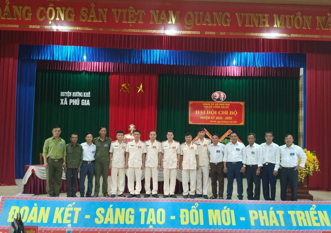Tặng hoa, chúc mừng Đại hội Chi bộ Công an xã Hương Vĩnh