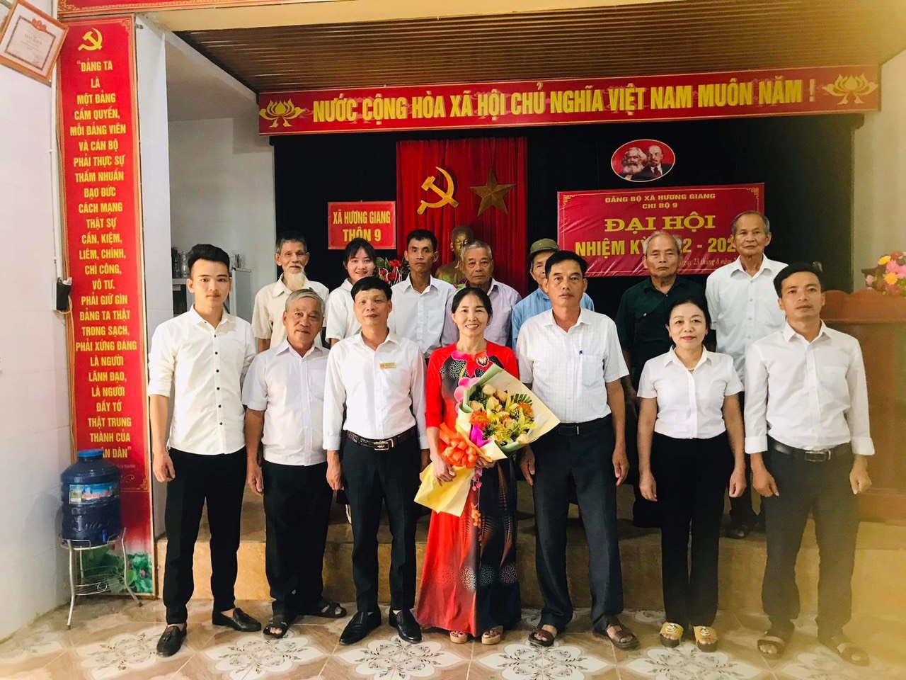Đại diện Đảng ủy xã Hương Giang tặng hoa, chúc mừng Chi bộ 9