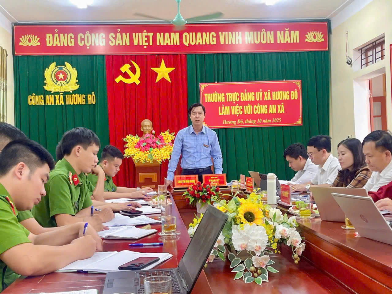 Theo báo cáo tại cuộc làm việc, trong thời gian qua, được sự lãnh đạo, chỉ đạo trực tiếp của Đảng ủy xã, Chi bộ Công an xã Hương Đô đã chỉ đạo lực lượng Công an xã phối hợp chặt chẽ với các lực lượng chức năng thực hiện đồng bộ các giải pháp, biện pháp nghiệp vụ, góp phần giữ ổn định tình hình an ninh, trật tự trên địa bàn; các vụ việc phát sinh được phát hiện và xử lý kịp thời, không để xảy ra các vụ việc phức tạp, khiếu kiện đông người... Đối với Chi bộ Yên Bình, Chi ủy đã tập trung chỉ đạo Ban Công tác Mặt trận, các đoàn thể chính trị - xã hội và Nhân dân thôn Yên Bình đoàn kết, nỗ lực thực hiện các mục tiêu, nhiệm vụ Nghị quyết Đại hội Chi bộ đã đề ra, đạt được nhiều kết quả quan trọng trên các lĩnh vực kinh tế, văn hóa - xã hội và quốc phòng - an ninh. Công tác xây dựng tổ chức Đảng và đảng viên được chú trọng, từng bước nâng cao chất lượng sinh hoạt, quan tâm phát triển đảng viên. Nhìn chung, cán bộ, đảng viên trong Chi bộ có tinh thần trách nhiệm cao, đoàn kết, chấp hành tốt các chủ trương, quy định của Đảng, chính sách, pháp luật của Nhà nước, quy chế hoạt động và các văn bản chỉ đạo của Chi bộ; tích cực tham gia xây dựng Chi bộ trong sạch, vững mạnh. Tình hình tư tưởng cán bộ, đảng viên ổn định, luôn tin tưởng vào đường lối, chủ trương của Đảng và Nhà nước, nhất là sau khi thực hiện chính quyền 2 cấp.