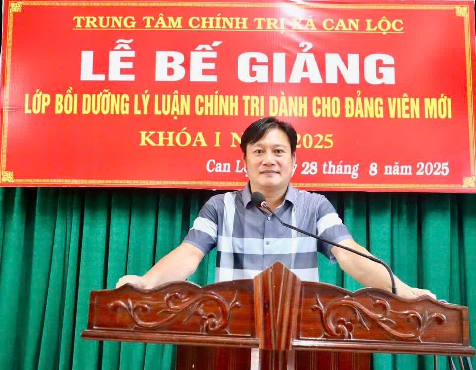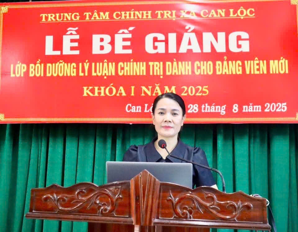 Phát biểu tại lễ bế giảng, đồng chí Phạm Thị Bích Liên, Ủy viên Ban Thường vụ Đảng ủy, Trưởng Ban Xây dựng Đảng xã và đồng chí Trần Văn Kháng, Phó Giám đốc phụ trách Trung tâm Chính trị xã Can Lộc đã ghi nhận, biểu dương những nỗ lực, cố gắng của các học viên, đồng thời, mong muốn các học viên tiếp tục phấn đấu rèn luyện, nâng cao bản lĩnh chính trị, phát huy vai trò tiên phong gương mẫu, góp phần xây dựng tổ chức Đảng ngày càng trong sạch, vững mạnh.