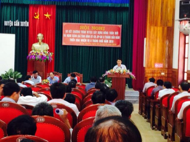 Phát biểu kết luận hội nghị, đồng chí Đặng Quốc Cương, Tỉnh ủy viên, Bí thư Huyện ủy, Trưởng Ban Chỉ đạo xây dựng Nông thôn mới huyện chỉ ra một số tồn tại, hạn chế trong công tác chỉ đạo, điều hành thực hiện Chương trình xây dựng Nông thôn mới và yêu cầu các địa phương, đơn vị đẩy mạnh tuyên truyền, nâng cao nhận thức cho cán bộ, người dân về xây dựng nông thôn mới; rà soát các tiêu chí để có giải pháp chỉ đạo thực hiện, nhất là các xã đăng ký về đích 2016; chỉ đạo quyết liệt thực hiện Đề án phát triển sản xuất, nâng cao đời sống nhân dân và Chỉ thị 07 của Ban Thường vụ Huyện ủy về xây dựng vườn mẫu, khu dân cư kiểu mẫu; rà lại để đánh giá hiệu quả việc thực hiện các chính sách của tỉnh về nông thôn mới. Tiếp tục xã hội hóa huy động các nguồn lực xây dựng Nông thôn mới, lồng ghép có hiệu quả nguồn lực từ các chính sách hiện hành của các cấp, phát huy vai trò của người dân và cộng đồng trong tổ chức thực hiện; nâng cao hiệu quả sử dụng vốn, phát huy nguồn đỡ đầu, tài trợ, chủ động cân đối nguồn lực cho từng công trình, từng tiêu chí. Toàn huyện quyết tâm phấn đấu có thêm 03 xã (Cẩm Vịnh, Cẩm Huy, Cẩm Phúc) đạt chuẩn nông thôn mới trong năm 2016.