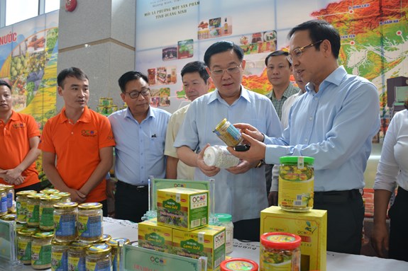Phó thủ tướng Vương Đình Huệ thăm gian hàng giới thiệu sản phẩm OCOP tỉnh Quảng Ninh tại hội nghị.