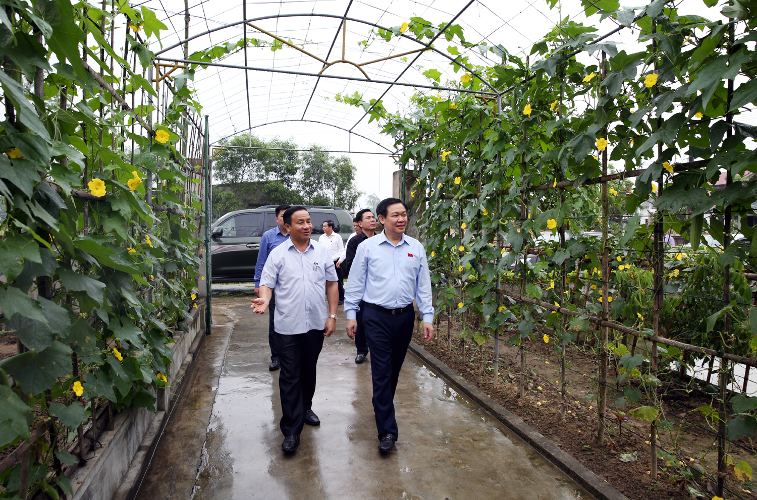 Ngày 28/4/2017, đồng chí Vương Đình Huệ, Ủy viên Bộ Chính trị, Phó Thủ tướng Chính phủ cùng với đồng chí Lê Đình Sơn, Ủy viên Ban Chấp hành Trung ương Đảng, Bí thư Tỉnh ủy, Chủ tịch Hội đồng nhân dân tỉnh thăm vườn mẫu của gia đình ông Dương Kim Hoàng ở thôn Hà Thanh (Nguồn ảnh: Ủy ban nhân dân xã cung cấp)