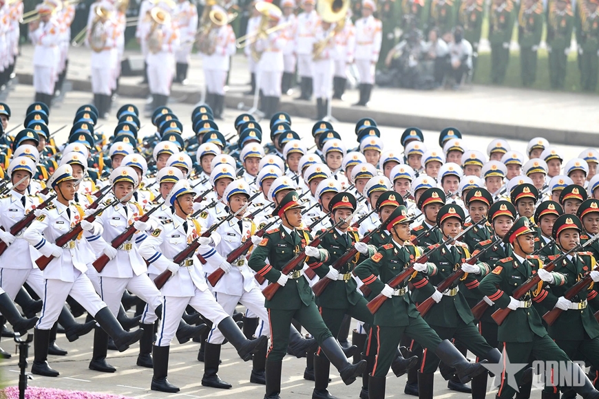 Lực lượng vũ trang diễu binh, diễu hành tại Lễ kỷ niệm 80 năm Cách mạng Tháng Tám thành công và Quốc khánh 2-9. Ảnh: TRỌNG HẢI