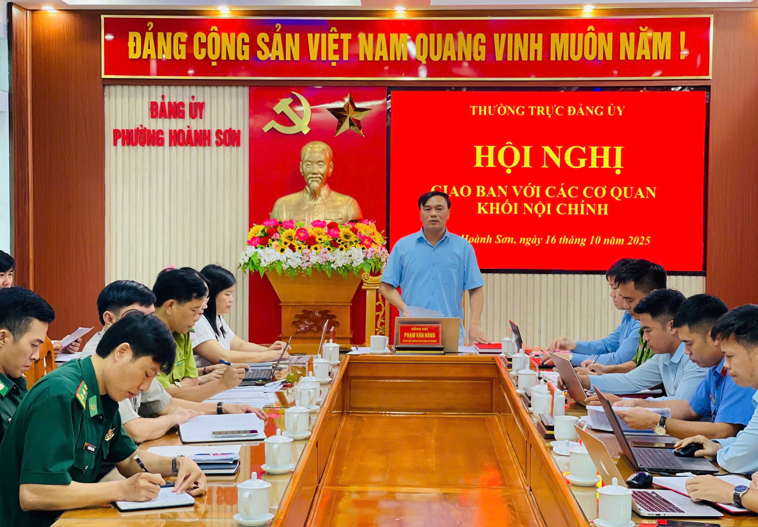 Đồng chí Phạm Văn Hùng, Phó Bí thư Thường trực Đảng ủy phường Hoành Sơn phát biểu kết luận Hội nghị