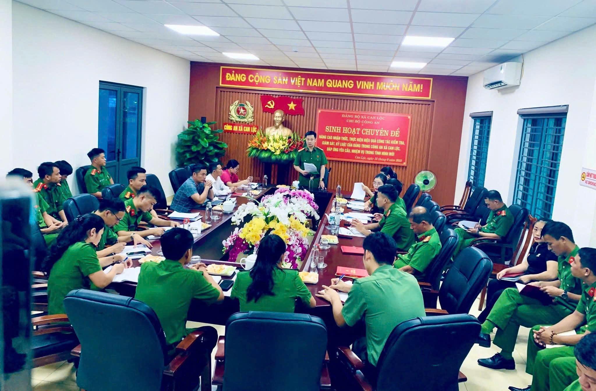 Triển khai thực hiện các văn bản chỉ đạo, hướng dẫn của cấp trên về sinh hoạt chi bộ và công tác kiểm tra, giám sát, chiều ngày 15/9/2025, Chi bộ Công an xã Can Lộc đã tổ chức sinh hoạt chuyên đề “Nâng cao nhận thức, thực hiện hiệu quả công tác kiểm tra, giám sát, kỷ luật của Đảng trong Công an xã Can Lộc, đáp ứng yêu cầu, nhiệm vụ trong tình hình mới” bằng hình thức thi trắc nghiệm.