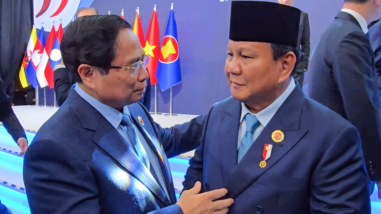 Thủ tướng Chính phủ Phạm Minh Chính gặp Tổng thống Indonesia Prabowo Subianto. ( Ảnh: Bộ Ngoại giao)