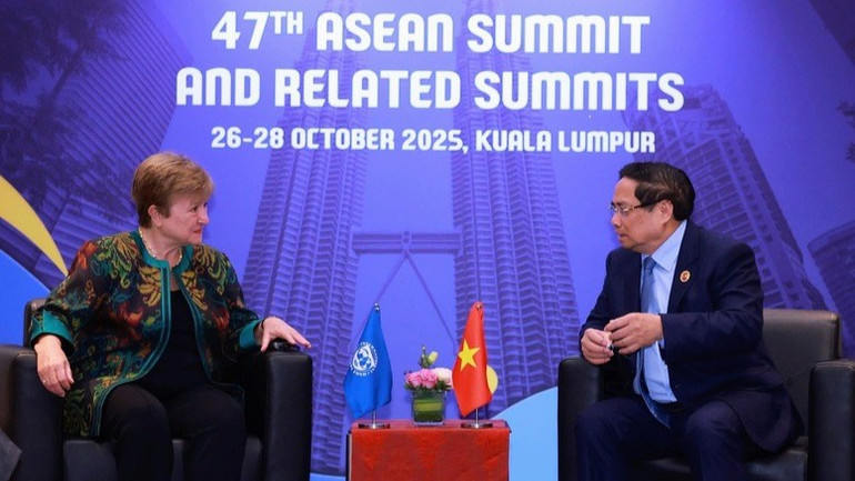 Chúc mừng Việt Nam vì những thành tựu phát triển kinh tế-xã hội thời gian qua, Tổng Giám đốc IMF cũng đánh giá cao quyết tâm và các biện pháp của Chính phủ Việt Nam nhằm ứng phó với những thách thức của kinh tế, tài chính toàn cầu, trong đó có vấn đề thuế quan, thúc đẩy vai trò của khu vực kinh tế tư nhân là động lực then chốt cho phát triển, và định hướng hội nhập quốc tế toàn diện, sâu rộng.