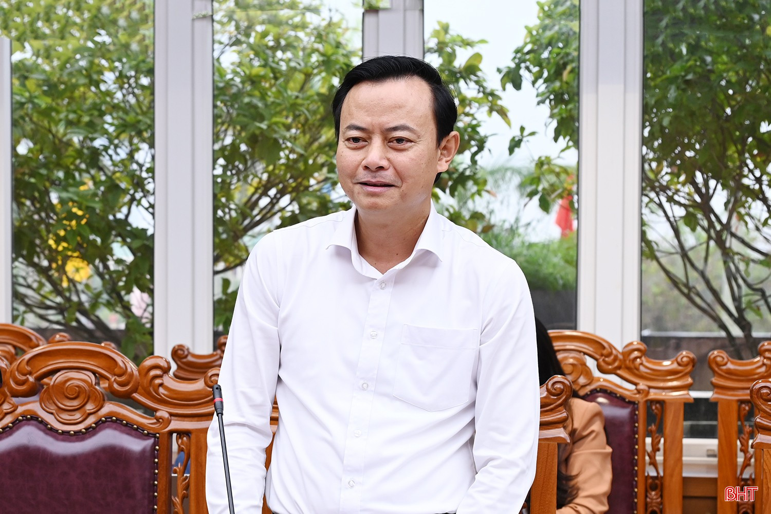 Phó Chủ tịch Thường trực HĐND tỉnh Trần Tú Anh phát biểu tại cuộc họp.