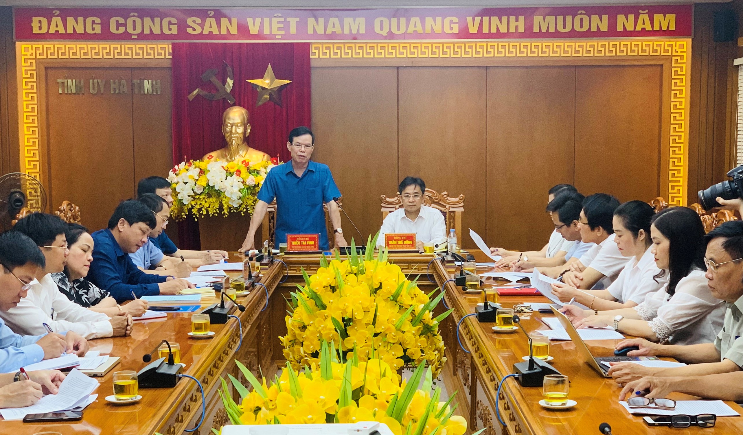 Đồng chí Triệu Tài Vinh phát biểu tại cuộc làm việc với Thường trực Tỉnh ủy Hà Tĩnh và đại diện một số địa phương, đơn vị