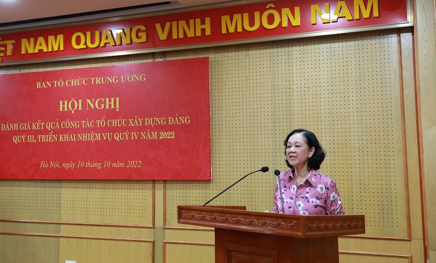 Phát biểu kết luận tại Hội nghị, đồng chí Trương Thị Mai khẳng định, 9 tháng đầu năm, công tác tổ chức xây dựng Đảng đã được các cấp ủy, tổ chức đảng quan tâm thực hiện nghiêm túc, đạt nhiều kết quả quan trọng; ban tổ chức cấp ủy các cấp đã có nhiều nỗ lực trong công tác tham mưu, góp phần tích cực vào kết quả chung của Ngành. Đồng chí Trương Thị Mai biểu dương, đánh giá cao tinh thần trách nhiệm của ban tổ chức cấp ủy các cấp trong việc đưa nghị quyết của Đảng vào cuộc sống, tích cực tham mưu cấp ủy, tổ chức đảng cụ thể hóa chủ trương, nghị quyết của Đảng phù hợp với thực tiễn địa phương, đơn vị mình. Một số nơi ban hành được các nghị quyết chuyên đề về công tác tổ chức xây dựng đảng, xây dựng được các mô hình mới, cách làm hay, quan tâm công tác cán bộ nữ, cán bộ trẻ...