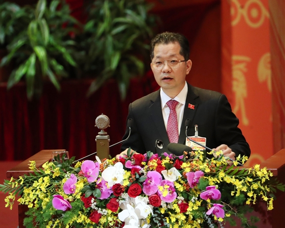 Đồng chí Vương Đình Huệ, Ủy viên Bộ Chính trị, Bí thư Thành ủy Hà Nội, thay mặt Đoàn chủ tịch điều hành thảo luận. Ảnh: Trọng Hải