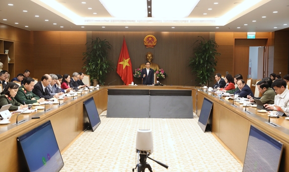 Phó thủ tướng Vũ Đức Đam, Phó thủ tướng Trịnh Đình Dũng, Bộ trưởng Bộ Y tế Nguyễn Thanh Long cùng nhiều lãnh đạo Chính phủ, bộ ngành liên quan dự họp. Ảnh: Trọng Hải